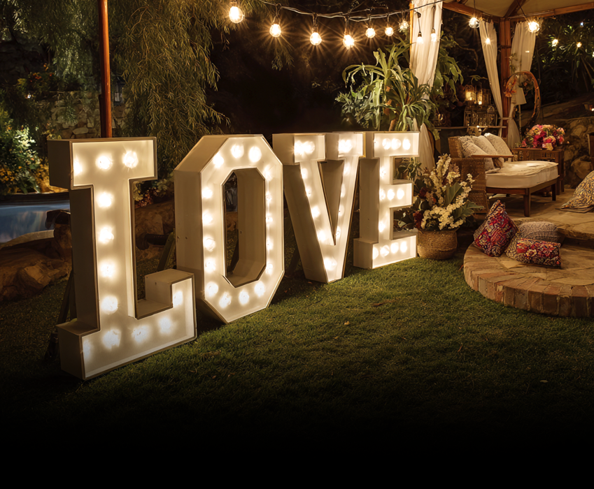 Set the perfect scene with our stunning Marquee Letters, customized to spell out names, dates, or catchy phrases that add a touch of grand personalization and an amazing photo backdrop.